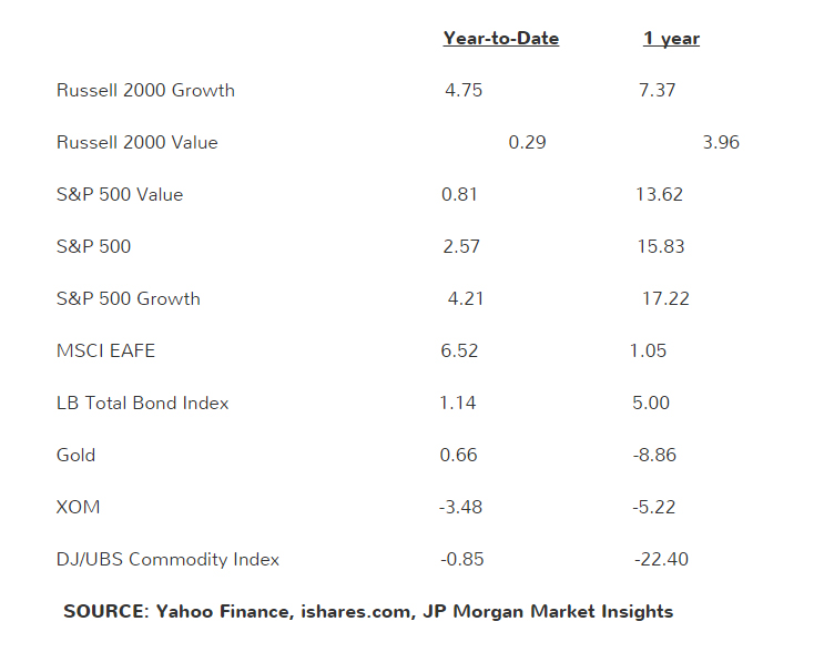 All indexes are unmanaged and an individual cannot invest directly in an index. Index returns do not include fees or expenses. (JPM: Market Insights)